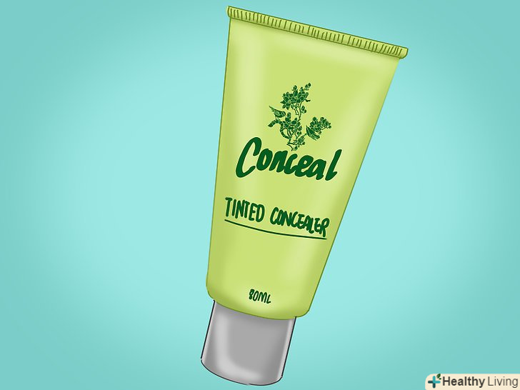 Виберіть кольоровий консилер.спробуйте використовувати консилер з жовтим відтінком, який допоможе приховати невелике почервоніння. Використовуйте праймер з зеленуватим відтінком, якщо вам необхідно приховати явні почервоніння і лущення шкіри.[6] При наявності розацеа дуже важливо вибирати засоби без вмісту масел.[7]- При нанесенні порошкоподібного консилера найкраще користуватися пензлем. Це дозволить наносити саме ту кількість, яке вам необхідно.[8] бактерії можуть призвести до ще більшого запалення розацеа, тому при виникненні подібної проблеми використовуйте антибактеріальні кисті.[9]