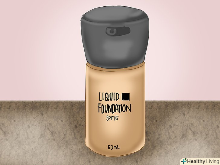 Використовуйте тональний крем.тональний крем допомагає вирівняти текстуру вашої шкіри. Нанесіть його рівномірно по всьому обличчю для вирівнювання відтінку.[11]- Подумайте про використання тональної основи з мінеральним порошком, яка менше подразнює шкіру.[12] насипте невелику кількість пудри в кришечку. Візьміть пудру за допомогою кисті, переміщаючи її по периметру кришечки, поки не зберете весь порошок. Наносите пудру круговими рухами, поступово охоплюючи всю поверхню обличчя.[13]