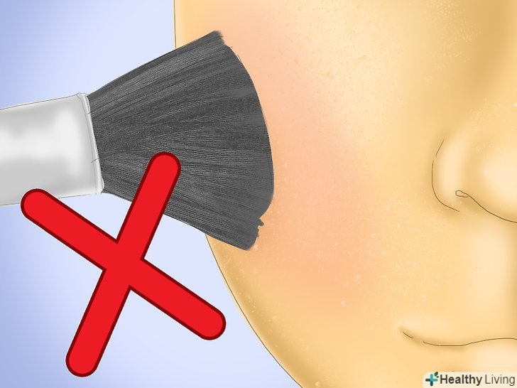 Не використовуйте рум'яна.не варто виділяти ще більше і так почервонілу шкіру. Використовуйте базу, яка дозволить природному рум'янцю просвічувати на щоках, не створюючи при цьому видимості роздратування або почервоніння.[14]