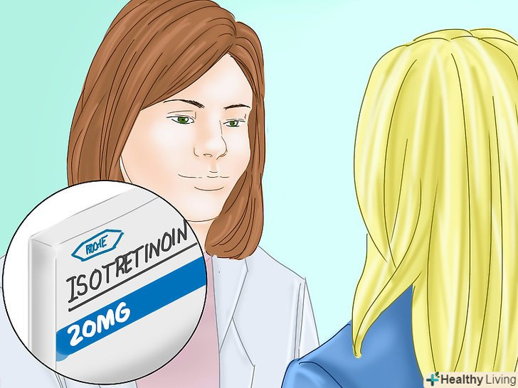 Обговоріть лікування акне.почервоніння також може бути викликано акне. Деякі препарати для лікування акне, такі як ізотретиноїн, одночасно усувають проблему розацеа. Цей препарат зменшує прояв хвороби на обличчі, як від акне, так і від розацеа.[17]