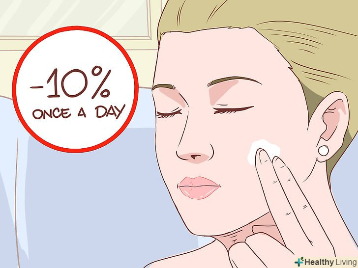 - Ви можете використовувати 10% розчин бензоїл пероксиду тільки в тому випадку, якщо акне не проходить протягом 4-6 тижнів, і якщо 5% розчин не сушить і не пошкоджує вашу шкіру.[42]