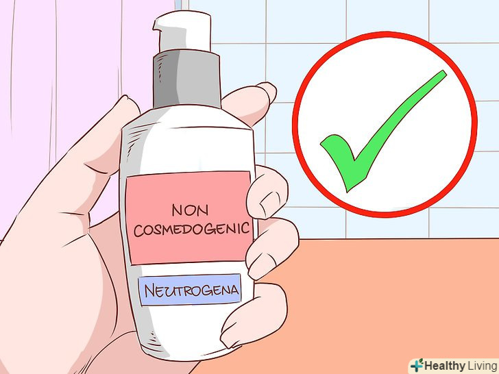 Використовуйте некомедогенну і гіпоалергенну продукцію.купуючи косметику або іншу продукцію для догляду за шкірою, наприклад зволожуючий або сонцезахисний крем, віддавайте перевагу некомедогенним засобам. Вони не будуть забивати пори, що запобіжить запалення в подальшому.[15] також зверніть увагу на косметичні засоби на водній або мінеральній основі або не містять жири.- Продукція з позначкою "Некомедогенний" була спеціально розроблена для схильної до появи акне шкіри, тому вона не погіршить стан вашої шкіри, а також не призведе до виникнення нового запалення.[16]