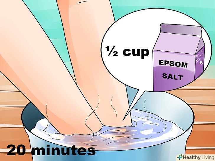 Час від часу замочуйте уражену ділянку, будь то на тілі, руках або ногах, після того як проткнете пухир. Англійська сіль допоможе видалити рідину. Наступні кілька днів замочуйте ступні в теплій воді, додаючи в неї півсклянки (150 г) англійської солі, або приймайте ванну з англійською сіллю по 20 хвилин кожен день.[16]