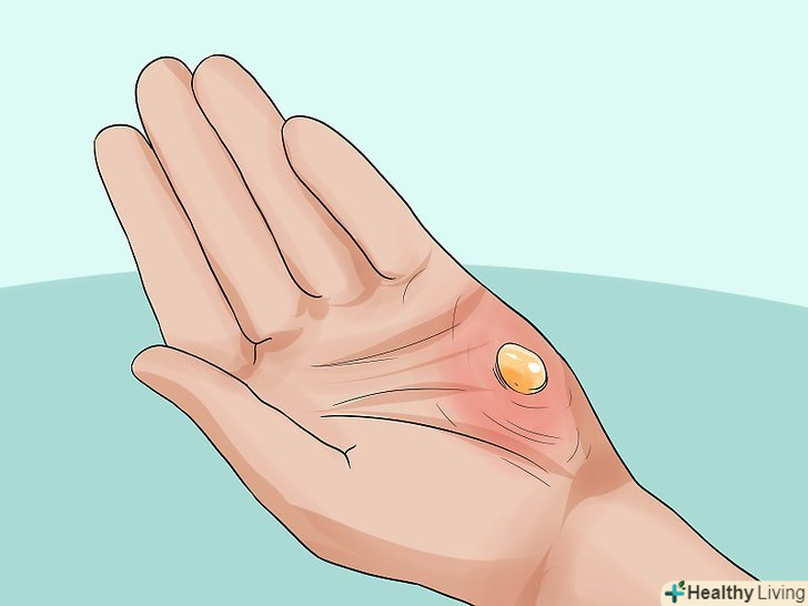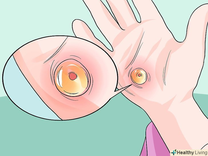 Остерігайтеся ознак інфекції.збільшення кількості гною, посилення болю, набряку або почервоніння може вказувати на інфекцію. В такому випадку вам слід звернутися до лікаря і почати приймати антибіотики. [17]- Збільшення набряку і почервоніння навколо пухиря може вказувати на інфекцію. Крім того, температура тіла може піднятися вище 37 °C. Якщо шкіра навколо болить сильніше, ніж сам пухир, і у вас спостерігаються перераховані симптоми, то цілком ймовірно, що у вас інфекція.