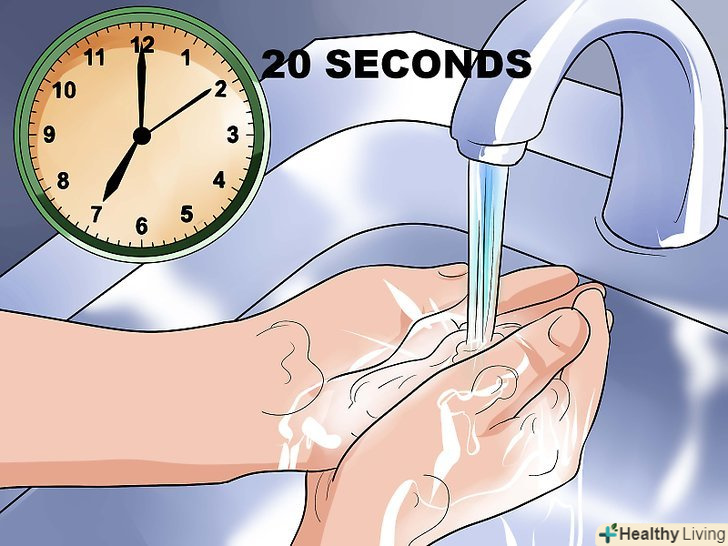 Вимийте руки теплою водою з милом.намилюйте руки протягом 20 секунд, а потім обполосніть їх водою.[7]- Використовуйте звичайне мило без запаху. Це дозволить уникнути запалення пухиря в результаті контакту з хімічними подразниками і запобігти перенесенню бактерій з рук на ніжну шкіру, коли пухир лопне.