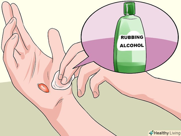 Промийте пухир милом і водою, медичним спиртом або антисептиком. [8]- Такий антисептик, як «Бетадин», можна купити в будь-якій аптеці. Однак звертайтеся з ним обережно, оскільки їм можна забруднити шкіру, одяг та інші поверхні.