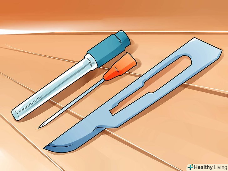 Приготуйте голку або лезо.для цієї мети краще використовувати одноразову стерильну голку або скальпель, які можна купити в аптеці. [9]- Якщо ви вирішите використовувати швейну голку з дому, спочатку замочіть її в медичному спирті.