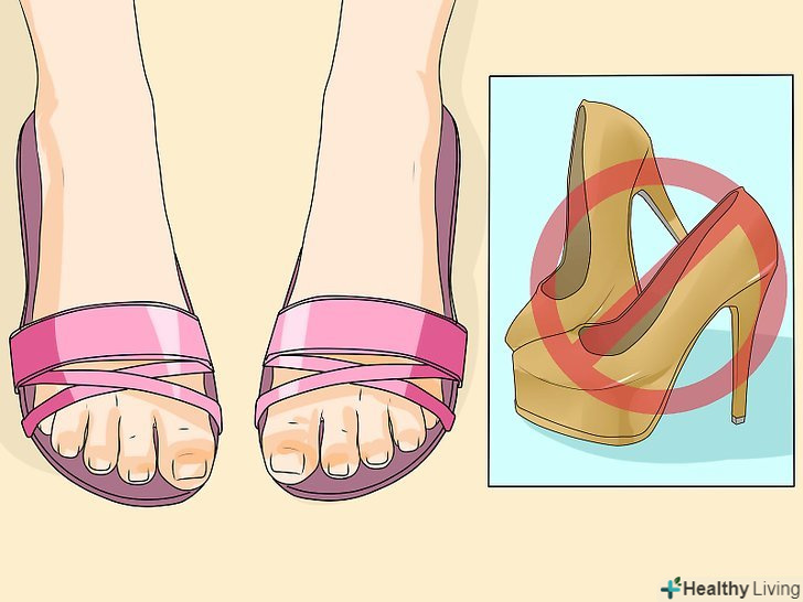 - Намагайтеся не носити взуття на високих підборах. Через це весь ваш вага перекладається на стопу, для виникнення мозолів краще і не придумаєш. Носіть взуття на плоскій підошві. З ними не тільки менше шансів заробити мозоль, вони ще й набагато зручніше.[4]