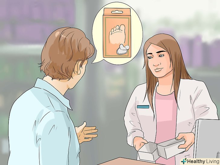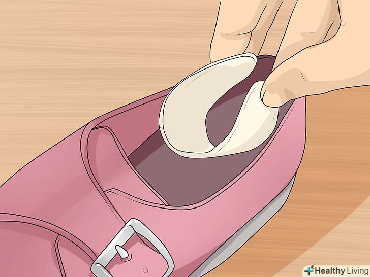 Виберіть правильні устілки.мозолі на ногах досить поширене явище. Через це безліч компаній почали виробляти спеціальні устілки для взуття. В основному такі устілки зроблені з кротового хутра і виробляються всіх можливих розмірів.[4]- Для мозолів вибирайте устілки у формі пончика. Вони покривають мозоль, зменшують тиск і тертя. Вони дешеві і продаються в більшості господарських магазинах і аптеках.
