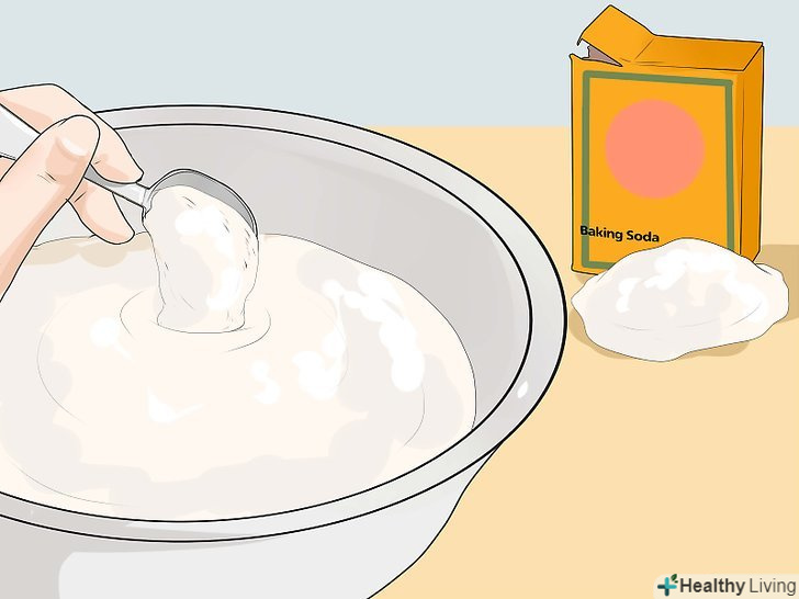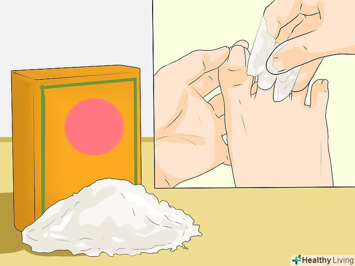 Скористайтеся харчовою содою.мозолі найкраще лікуються замочуваннями в теплій воді. Цим Ви позбавляєтеся від мертвої шкіри і лікуєте саму мозоль. У миску з теплою водою додайте три столові ложки харчової соди. Харчова сода має рівень кислотності рівним 9, тобто вона лужна і може вплинути на шкіру.[2]- Ви також можете втерти в мозолі пасту, що складається з харчової соди і води співвідношенням три до одного.[1]