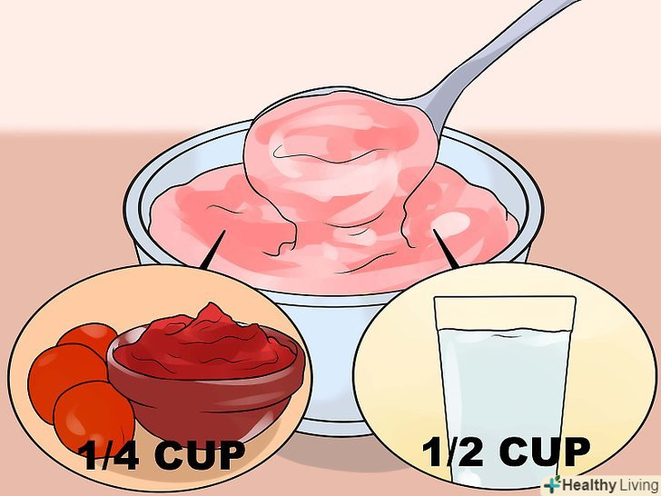 Спробуйте в якості лікувального засобу помідор.томатний сік може зменшити печіння і почервоніння ураженої ділянки, а також сприяє загоєнню пухирів і опіків.- Змішайте 1/4 склянки томатної пасти або соку і 1/2 склянки кефіру. Нанесіть отриману суміш на обпалену шкіру, залиште на півгодини і акуратно змийте холодною водою.