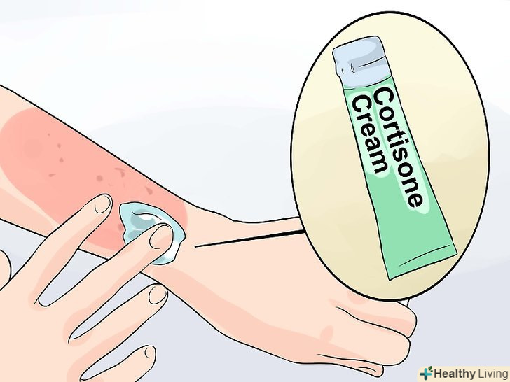 Щоб зняти запалення, спробуйте нанести на пошкоджену ділянку шкіри крем з кортизоном.Кортизон містить мінімальну кількість стероїдів, які сприяють зменшенню запалення від сонячних опіків, пригнічуючи активність імунної системи.[26]- Крем з кортизоном не рекомендований дітям, тому обов'язково проконсультуйтеся з лікарем, щоб він порадив вам альтернативний засіб.