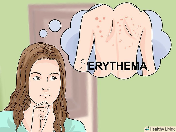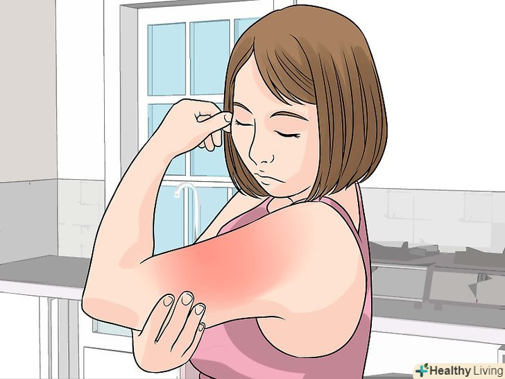 Зверніть увагу на появу ранніх симптомів.якщо ви виявили у себе ранні симптоми сонячного опіку, для початку сховайтеся від сонця, щоб запобігти утворенню пухирів. Отже, ці симптоми включають: [32]- Почервоніння шкіри, шкіра в цьому місці стає ніжна і тепла на дотик. Ультрафіолетові промені сонця пошкоджують і руйнують клітини епідермісу (зовнішній шар шкіри). Як тільки клітини руйнуються, активується механізм імунної системи, кровотік в пошкодженій області збільшується, знижується проникність судин, щоб лейкоцити змогли вийти і утилізувати зруйновані клітини. Шкіра стає почервонілою і теплою на дотик через збільшення кровотоку.