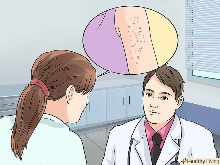 Зверніть увагу на наявність сверблячих пухирів.ці бульбашки можуть виникнути через кілька годин або навіть кілька днів після сонячного опромінення. В епідермісі є спеціальні нервові волокна, які відповідають за відчуття свербіння. Якщо через тривале перебування на сонці клітини епідермісу починають руйнуватися, ці нервові волокна активуються, через що в місці опіку ми відчуваємо свербіж.[33]- Крім того, організм направляє в місце опіку додаткову рідину, щоб швидше замінити зруйновані клітини новими — це і є причиною утворення пухирів.