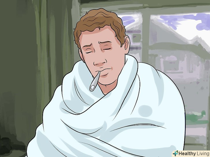 Вимірюйте температуру.коли імунна система організму сприймає зруйновані клітини та інші чужорідні агенти, активуються пірогени (речовини, що викликають лихоманку) і потрапляють в гіпоталамус — частина мозку, яка відповідає за підтримку температури організму. Потім пірогени зв'язуються з рецепторами в гіпоталамусі, через що температура тіла починає підніматися.[34]- Ви можете виміряти температуру за допомогою термометра, який можна купити в будь-якій аптеці.