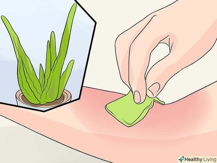 Прикладіть алое вера.алое вера ефективно допомагає при невеликих опіках і при лікуванні пухирів. Відмінний вибір-гель Алое вера. Він охолоджує місце опіку, знімає біль і роздратування, зволожує уражені ділянки шкіри і сприяє загоєнню опіку. Результати досліджень показали, що при лікуванні опіків із застосуванням алое вера вони заживають на 9 днів швидше, ніж при лікуванні без застосування алое вера.[6][7]- Найкраще вибирати натуральні продукти з мінімальною кількістю хімічних добавок. Гель на основі алое вера (без консервантів) можна придбати практично в будь-якій аптеці. Якщо у вас вдома є рослина алое, ви можете обійтися без гелю. Досить взяти лист алое і розрізати його навпіл. Соковитою частиною листа прикладіть його до місця опіку. Цю процедуру потрібно повторювати якомога частіше.