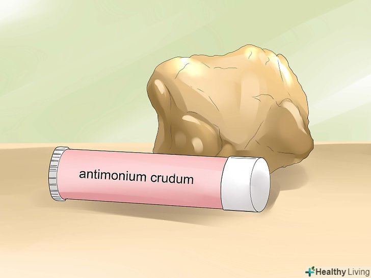 Розгляньте можливість застосування антімоніума крудума і сірки. Антимониум крудум успішно бореться з твердими і ороговілими мозолями. Ви можете застосовувати "антім круд" 200 двічі на день протягом місяця. Також щодня місцево застосовуйте настоянку туї на мозоль, щоб домогтися кращих результатів.- Сірка дуже добре допомагає при проблемах зі шкірою. Вона показана при брудно виглядають мозолях на сильно потіють ногах зі зміною кольору шкіри до чорного. Застосування сірки 200 двічі на день протягом одного місяця або до зникнення мозолів має бути достатнім.