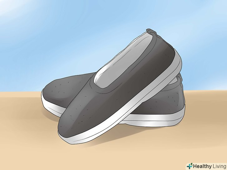Носіть комфортне вільне взуття з м'якою підошвою.переконайтеся в тому, що ви носите взуття правильного розміру, вимірявши відстань від п'яти до великого пальця стопи. Якщо ви дуже активні, розгляньте варіант придбання пари тенісних туфель, які підходять вам за розміром. Вони дорожчі, але варті того.- Також важливо носити відповідні вам шкарпетки. Уникайте носіння занадто тугих або просторих шкарпеток, так як це може посилити тертя.