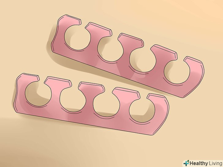 Пошукайте роздільники для пальців.вони необхідні при вальгусних мозолях, які з'являються між пальцями через поту і тертя. Вони часто бувають з поролону, пластику або іншого синтетичного матеріалу, якому надана спеціальна форма для утримання пальців на відстані один від одного і зменшення тертя між ними.