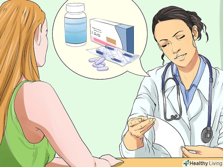 Дотримуйтесь вказівок лікаря.під час прийому лікар повинен оглянути уражене місце. Якщо він запідозрить бактеріальну інфекцію, то, ймовірно, попросить здати аналіз. Аналіз покаже, чи пов'язана висип з бактеріальною або грибковою інфекцією, і в залежності від цього лікар призначить лікування. Зазвичай лікарі призначають один або кілька препаратів наступних груп:[5]- Протигрибковий крем (при грибкової інфекції);