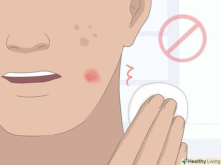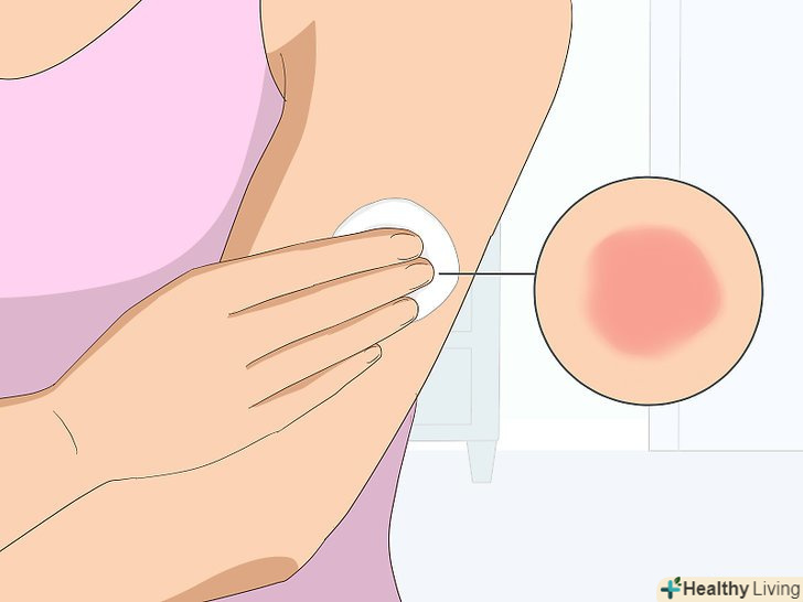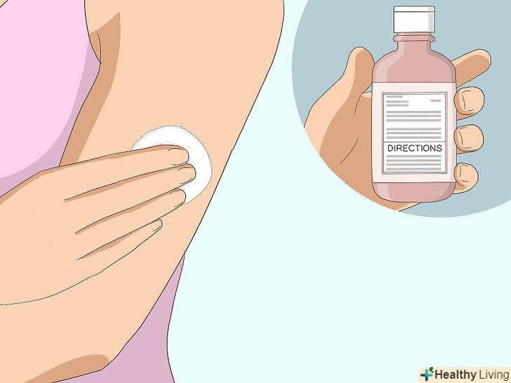 Промакніте вологим тампоном уражену ділянку шкіри.обробіть уражену ділянку цілком не менше одного разу.[3]- Якщо на ураженій ділянці утворилася скоринка, постарайтеся не здерти її, коли будете наносити лосьйон. В іншому випадку роздратування посилиться, а шкіра буде гоїтися довше.[4]