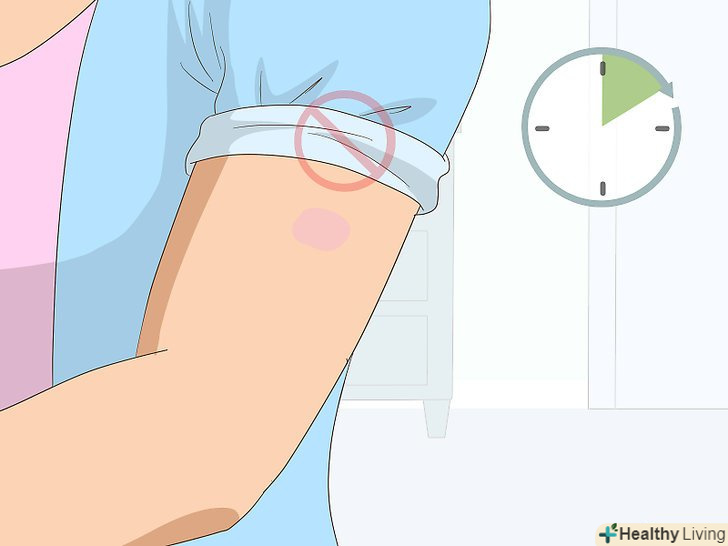 Дайте лосьйону висохнути.залиште лосьйон на пошкодженій шкірі. Шкіра повинна залишатися відкритою, поки лосьйон повністю не висохне-через контакт з одягом він може вбратися в тканину. Через кілька хвилин доторкніться до ділянки кінчиками пальців, щоб зрозуміти, чи повністю вбрався лосьйон чи ні. Шкіра повинна бути абсолютно сухою на дотик.[7]