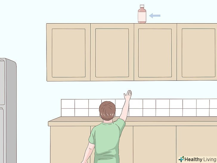 Тримайте лосьйон в недоступному для дітей місці.Тримайте лосьйон там, куди дітям не вдасться дістатися без сторонньої допомоги. Діти можуть випадково проковтнути лосьйон або занести його собі в очі або ніс. Щоб цього уникнути, тримайте лосьйон там, куди дітям не дістатися.[10]