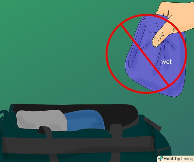 Не носіть мокру або пропотілу одяг в спортивній сумці.не тримайте також сирий одяг в шафці. Замість цього мийте свій спортивний одяг кожного разу після використання.[6]