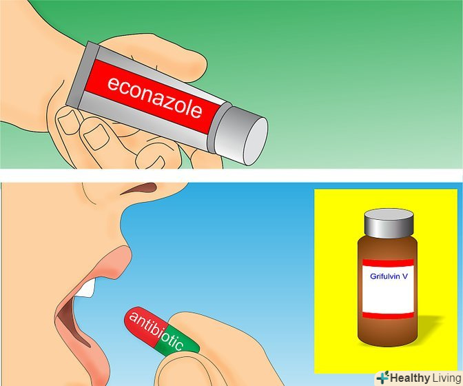 - Прийняті всередину антигрибкові ліки: Споранокс, дифлюкан або Ламізил – ось ті препарати, які може виписати лікар. Вони можуть викликати проблеми з шлунково-кишковим трактом або порушити функцію печінки. Якщо ви приймаєте антациди або варфарин, то вам не слід використовувати ці ліки. Інший препарат, гривульфін V, приймають довше, але він краще підходить тим пацієнтам, які алергічні ДО ІНШИХ антигрибкових препаратів або мають захворювання, що не дозволяють використовувати інші ліки.[5]