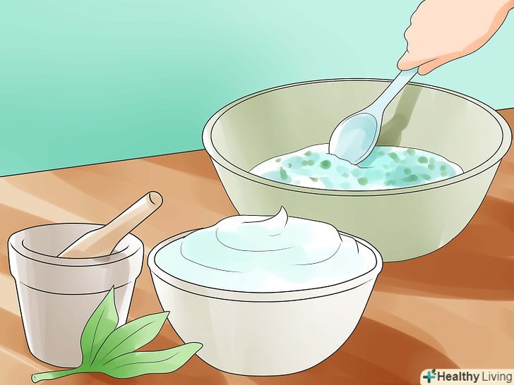 Змішайте простий сир з травами.деякі трави посилюють відбілюючий ефект йогурту, який він надає на шкіру. Приготовлену суміш йогурту з травами нанесіть на обличчя і будь-які інші ділянки шкіри з пігментними плямами. Зачекайте, поки йогурт не висохне, а потім змийте його прохолодною водою. Нижче наведено список трав з антиоксидантами і біофлавоноїдами, які можна додати в йогурт, щоб посилити його відбілюючі властивості проти пігментних плям:- 1 столова ложка порошкової гірчиці;