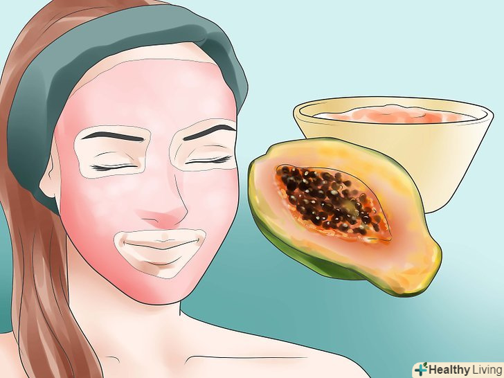 Зробіть маску з папайї.вишкребіть всю м'якоть папайї в миску і розімніть її в пасту однорідної консистенції. Можливо, ви захочете скористатися міксером, щоб ретельно подрібнити фрукт.- Візьміть ватяну паличку або макіяжну кисть і нанесіть маску на обличчя і будь-які інші ділянки шкіри з пігментними плямами.