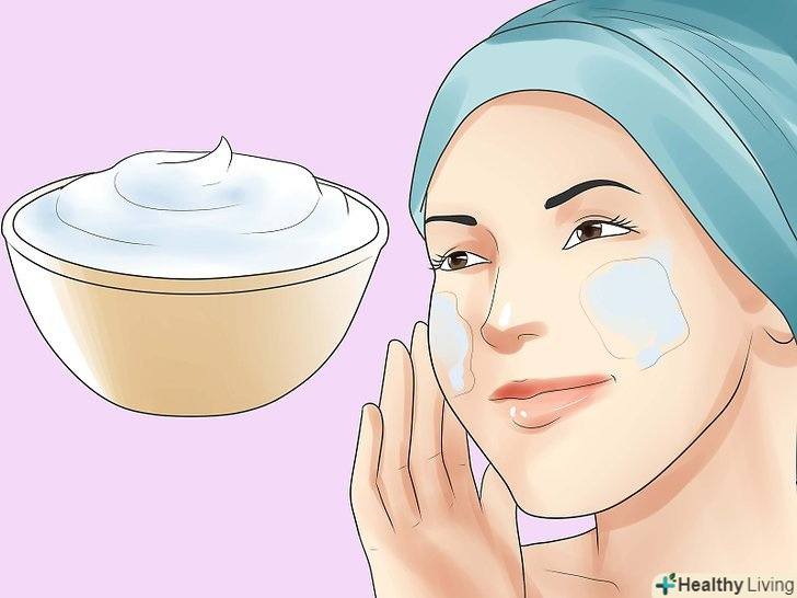 Нанесіть на обличчя простий йогурт.такий кисломолочний продукт, як йогурт, містить в собі кислоти, здатні освітлювати пігментні плями. Корисні бактерії йогурту також допомагають боротися з плямами, так як містять ферменти, що розщеплюють такі білки, як меланін.[4]- Нанесіть простий йогурт на пігментні плями, які потрібно освітлити.