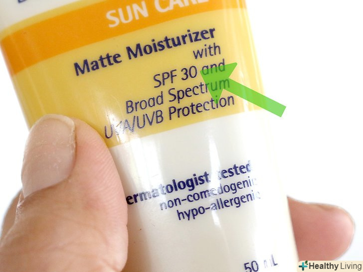 Щодня наносите сонцезахисний крем.використання сонцезахисного крему з SPF 30 допоможе запобігти такі проблеми зі шкірою, як поява складочок, зморшок і тьмяного кольору обличчя.[11] сонце може посилити акне, так що вам слід захищати свою шкіру. Наносите крем кожні кілька годин, якщо це необхідно, особливо якщо ви спітніли або брали водні процедури.[12]- При наявності забитих пір слід вибирати сонцезахисний крем з позначкою "некомедогенно" на етикетці. Це означає, що він зроблений не на масляній основі і не забиває пори.