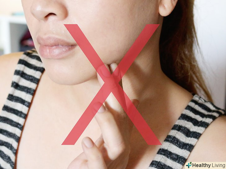 Не торкайтеся обличчя.торкаючись до обличчя, ви поширюєте бактерії і масла по всій його поверхні. Це може привести до інфекцій, запалення і появи рубців.[15] якщо ви хочете досягти чистої, сяючої шкіри, не слід торкатися обличчя і терти його.