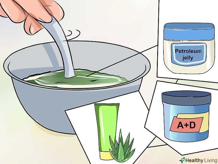 Приготуйте власний засіб від натертостей.вам знадобляться вазелін і крем або мазь від попрілостей, яка містить в своєму складі ланолін. Змішайте 1 склянку крему і 1 склянку вазеліну. Додайте 1/4 склянки крему з вітаміном E і 1/4 склянки крему з алое вера. Ретельно перемішайте. Вийшло засіб має бути досить густим — настільки, щоб ви могли наносити його на уражену ділянку шкіри.[11]- Наносите засіб, який ви зробили, на області, де натертості утворюються найчастіше. Робіть це перед кожним тренуванням або коли ви знаєте, що спітнієте. Цей засіб знімає подразнення на шкірі та запобігає появі мозолів[12]