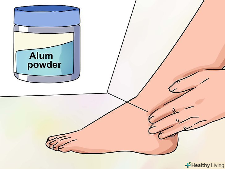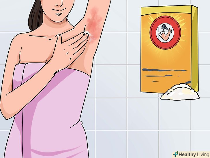 Нанесіть присипку.нанесіть на шкіру дитячу присипку. Це повинно допомогти зменшити тертя. Можна використовувати дитячу присипку, що не містить тальк, харчову соду, кукурудзяний крохмаль або інше подібне засіб. Не рекомендується використовувати тальк або засоби, що містять тальк, так як згідно з деякими дослідженнями, він володіє канцерогенними властивостями. Особливо це стосується жінок і засобів, які наносять в інтимні зони.[2]