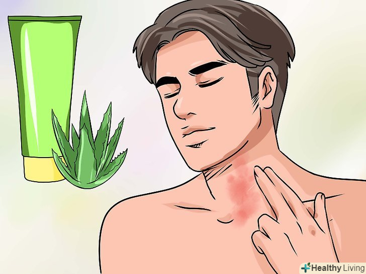 Нанесіть заспокійливий гель і масло.наприклад, на уражену ділянку можна нанести гель з алое вера. Для цього підійде як гель з натурального алое, так і готовий засіб, що продається в аптеці або в магазині (але перед покупкою переконайтеся, що в ньому міститься мінімальна кількість добавок). Алое Віра відмінно заспокоює шкіру. Також можна нанести пару крапель олії чайного дерева на ватний тампон і ретельно протерти цим тампоном шкіру. Масло чайного дерева має антисептичні властивості, а тому може запобігти розвитку інфекції і посприяти швидкому загоєнню.