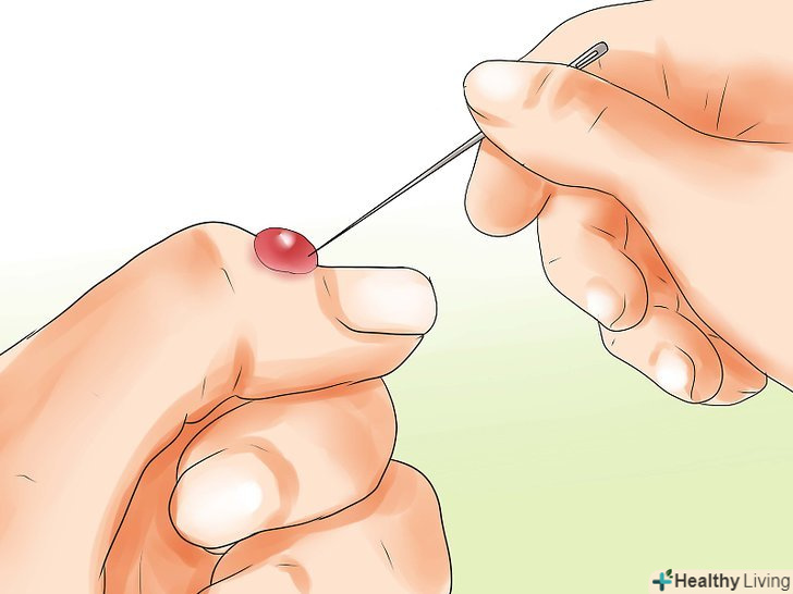 Вирішіть, чи варто протикати мозоль.як правило, мозоль слід залишати як є, щоб стан не погіршився, а інфекція не поширилася. Але якщо мозоль знаходиться на суглобі і тисне на нього, можливо, її все ж слід проколоти.[1]- Дренаж гною допоможе зняти тиск і зменшити біль. Запам'ятайте-після того, як ви проткнете мозоль, вам доведеться спостерігати за її станом і тримати її в чистоті і забинтованої.