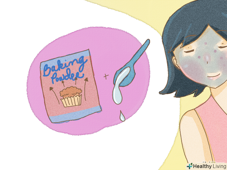 Скористайтеся маскою з харчової соди, щоб видалити мертві клітини шкіри обличчя.мертві клітини часто викликають висипання і тьмяний колір обличчя.- Змішайте від 70 до 150 гр харчової соди з чайною ложкою теплої води. Вам потрібно досягти пастоподібної суміші, так що або зменшіть, або додавайте воду в залежності від консистенції.