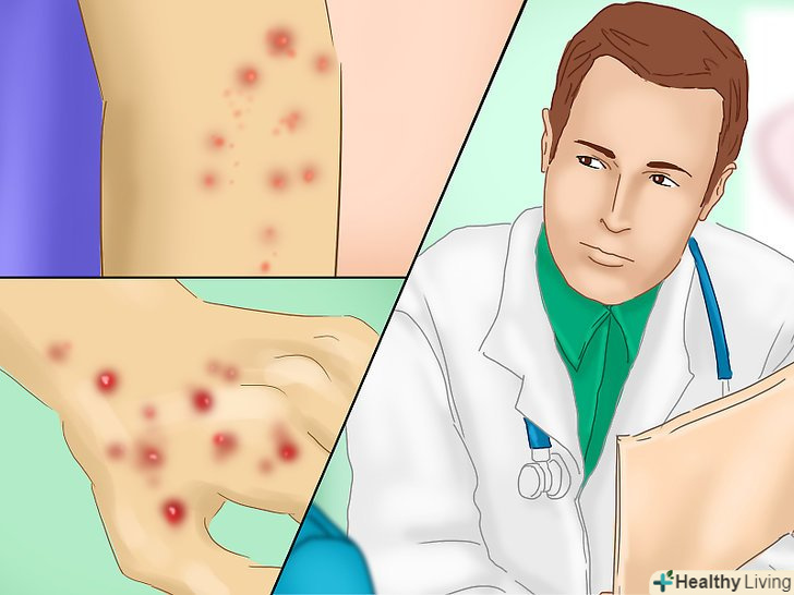 Розпізнайте симптоми. Існує кілька симптомів корости різного ступеня тяжкості. Знання симптомів хоч і не дозволить уникнути зараження, але зате допоможе зрозуміти, коли необхідно приступити до лікування.[7]- Свербіж, який зберігається вночі, є одним із симптомів корости. Це найбільш поширений симптом. Сверблячка може бути таким сильним, що буде заважати вам заснути.