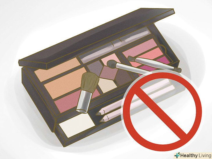 Ходіть без макіяжу або використовуйте тільки нежирну косметику.косметика також може змішуватися з жиром на шкірі, закупорюючи пори. Тому найвірніший спосіб уникнути посилення проблеми-це не наносити косметику на прищі. Але якщо так не виходить, шукайте продукти з написом "Некомедогенний" (не закупорює пори). Краще вибирати косметику на водній або мінеральній основі.[6][7]- Жирні тональні креми або тональні креми на основі воску з більшою ймовірністю блокують бактерії і бруд всередині прища. І потім, коли бактерії розмножаться, тиск в прищі зросте, і, швидше за все, він проявиться на шкірі у вигляді комедона або чорної точки.