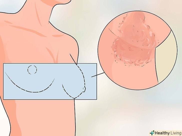 Переконайтеся, що у вас немає раку соска молочної залози, або хвороби Педжета.це захворювання зустрічається дуже рідко, на нього припадає від 1 до 4% від загального числа захворювань на рак молочної залози. Симптоми хвороби Педжета схожі з псоріазом і екземою, вона також може супроводжуватися свербінням.[35]- Захворювання зароджується в соску або навколишнього його ареоле, воно часто супроводжується червоною лускатою висипом, іноді свербінням. При цьому сосок може сплющитися, можливі виділення.[36]