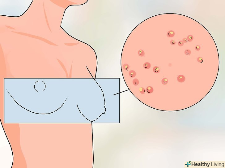 Розпізнайте грибкову інфекцію, або мікоз грудей.найчастіше грибкова інфекція вражає ті місця на тілі, де тепло і волого, і куди майже не проникає світло. Як правило, це пахви, область паху і ділянки під грудьми.[15]- Ділянка шкіри під грудьми називається подгрудной областю. Тут є сприятливі умови для зростання грибка. Найбільш часто мікоз в подгрудной області викликається дріжджоподібним грибком роду кандида.