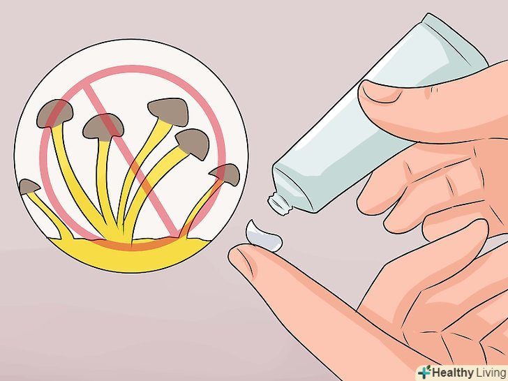 Використовуйте зовнішні протигрибкові засоби.обробляйте уражену ділянку шкіри протигрибковими препаратами, що відпускаються без рецепта. До таких препаратів відносяться мазі Клотримазол і міконазол.[21]- Більш сильнодіючі протигрибкові препарати, такі як Ністатин (порошок для зовнішнього використання), відпускаються за рецептом лікаря.[22]