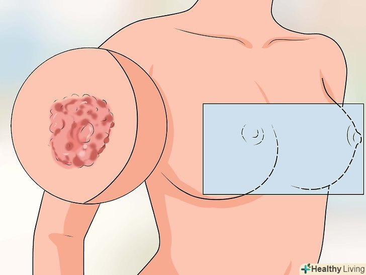 Придивіться, чи немає у вас симптомів набряково-інфільтративного раку молочної залози.цей вид раку зустрічається дуже рідко. На нього припадає всього лише від 1 до 4% від загального числа захворювань на рак молочної залози, і він часто супроводжується свербінням грудей.[33]- При набряково-інфільтративному раку в грудях утворюється пухлина, причому захворювання часто супроводжують зміни в шкірі і тканинах, що оточують пухлину. Зміни в тканинах проявляються раптово і швидко розвиваються.