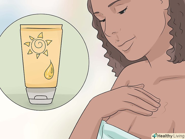 Захищайте свою шкіру.оберігайте шкіру від впливу прямого сонячного світла і агресивних хімічних речовин. Носіть одяг, що прикриває груди і інші ділянки тіла.[5]- Використовуйте зволожуючий сонцезахисний крем.