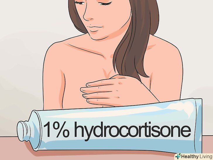 Для полегшення свербіння використовуйте мазь, що містить 1% гідрокортизону.таку мазь можна купити без рецепта в найближчій аптеці. Наносите мазь на сверблячу ділянку шкіри 1-4 рази на день.[14]- Якщо симптоми не ослабнуть протягом одного-двох днів, зателефонуйте доктору.