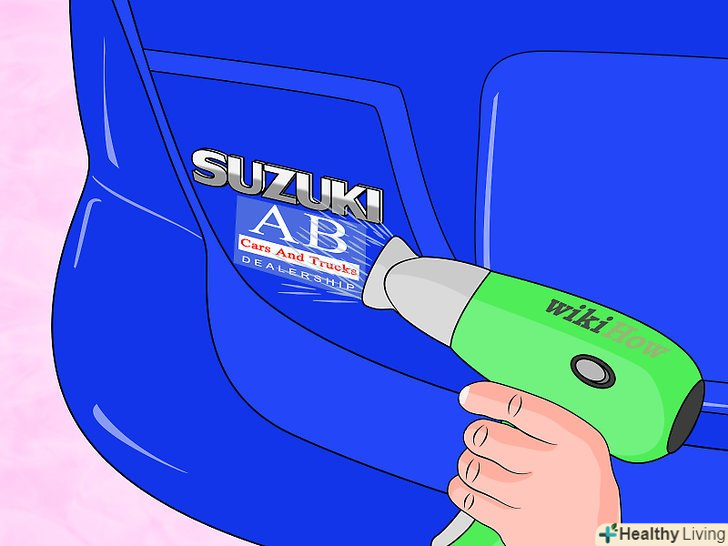 За допомогою фена для волосся розігрійте емблему або можете не гріти, якщо ви прибираєте емблему в жаркий день.у спекотний день вона трохи ослаблена, тоді як в прохолодний день клей під нею потрібно розігрівати.