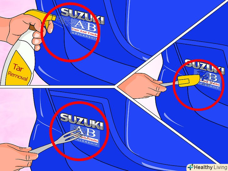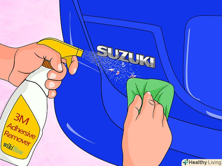 Коли емблема видалена скористайтеся засобом Goo Gonewith, 3M Adhesive Removera або WD40 для того, щоб видалити з кузова автомобіля залишки клею.після видалення клею нанесіть віск і відполіруйте ділянку вручну.