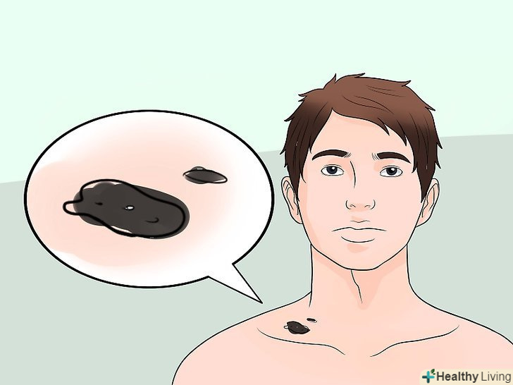 Зверніть увагу на проблемні родимки.проводячи огляд, приділіть особливу увагу проблемним родимок. Постарайтеся помітити, чи змінила родимка форму, розмір або колір; витікає з неї рідина або вона кровоточить; вона свербить, набухла або болить, коли ви до неї торкаєтеся? Для відстеження проблемних родимок дотримуйтесь правилом акценту. Правило для виявлення меланоми полягає в наступному:- А: асиметрія. Родимка складається з різних половинок і одна половинка не схожа на іншу